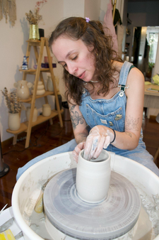 En tiempos pandémicos compró una máquina de torno, luego otra y se pasó los meses del confinamiento practicando, dialogando con la arcilla. Con la complicidad silenciosa del tiempo y la paciencia, sus destrezas mejoraron hasta que se independizó de su maestra y fundó su propio taller de cerámica.